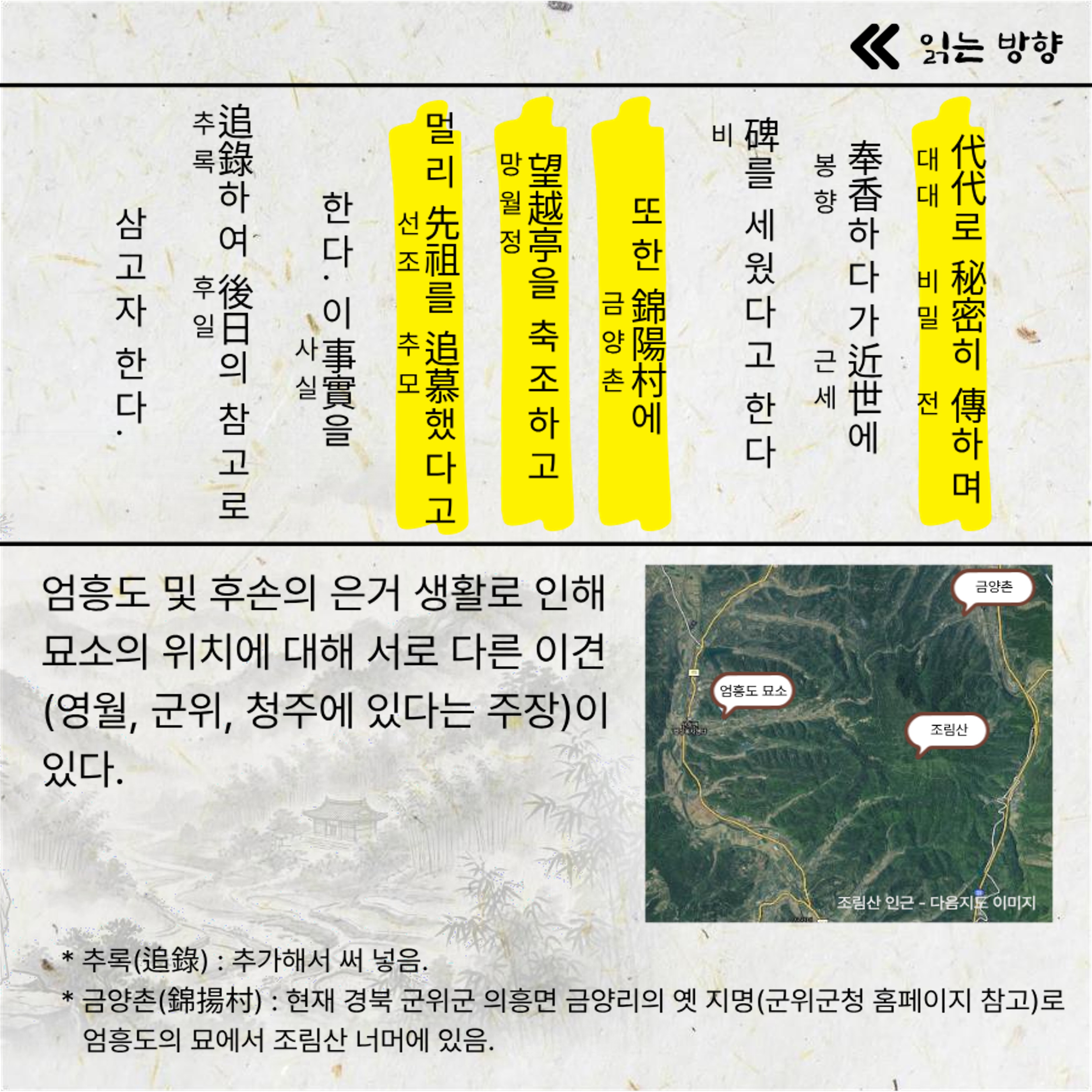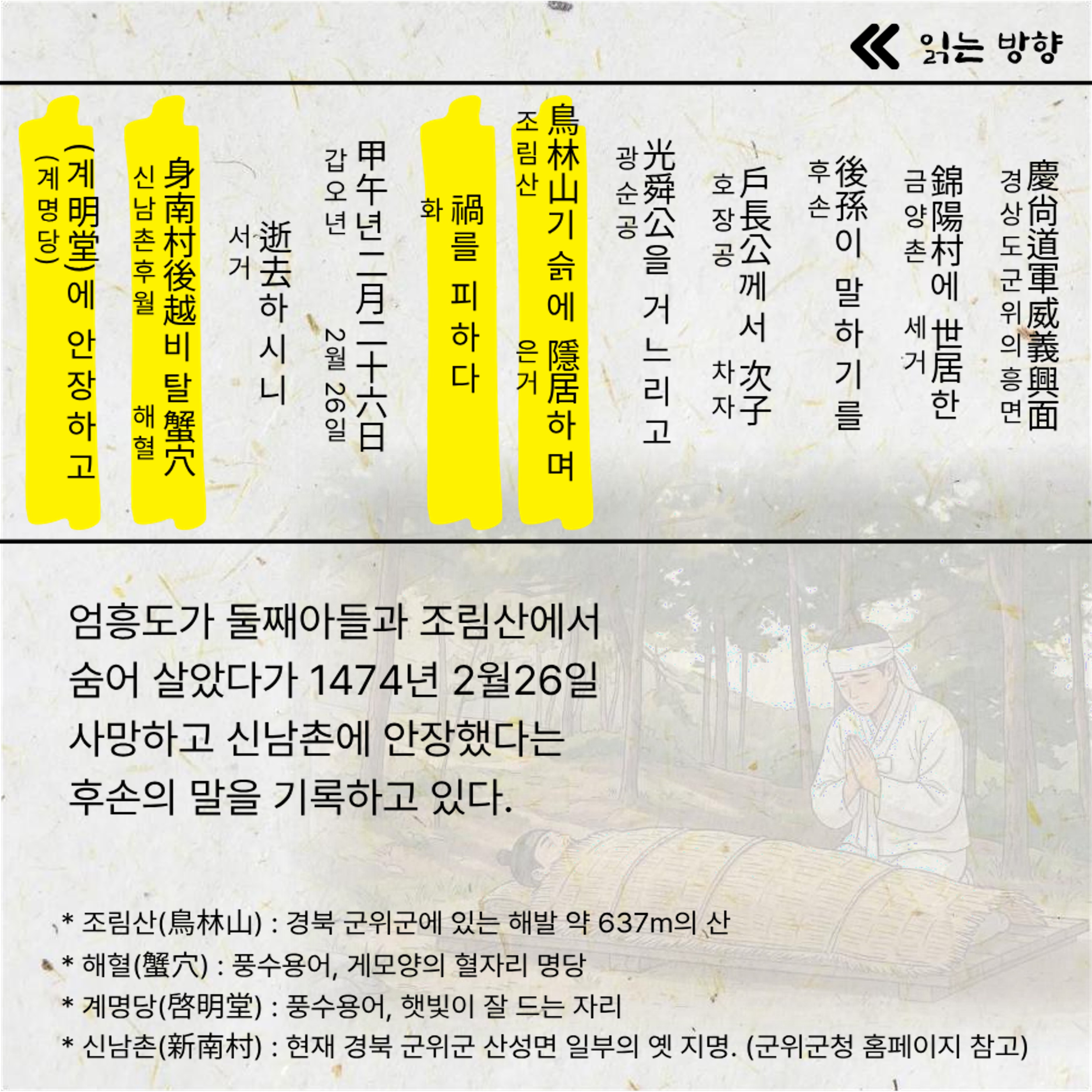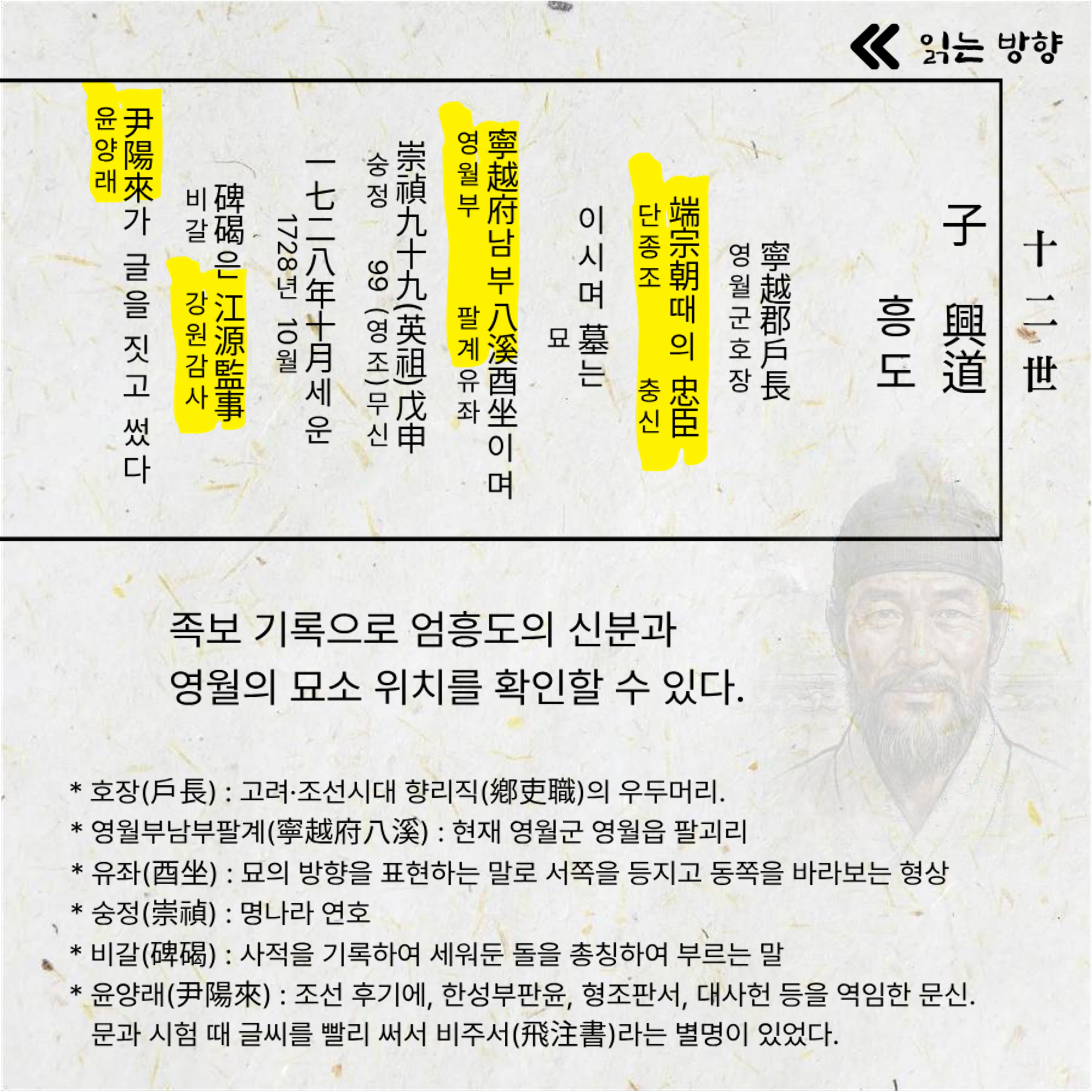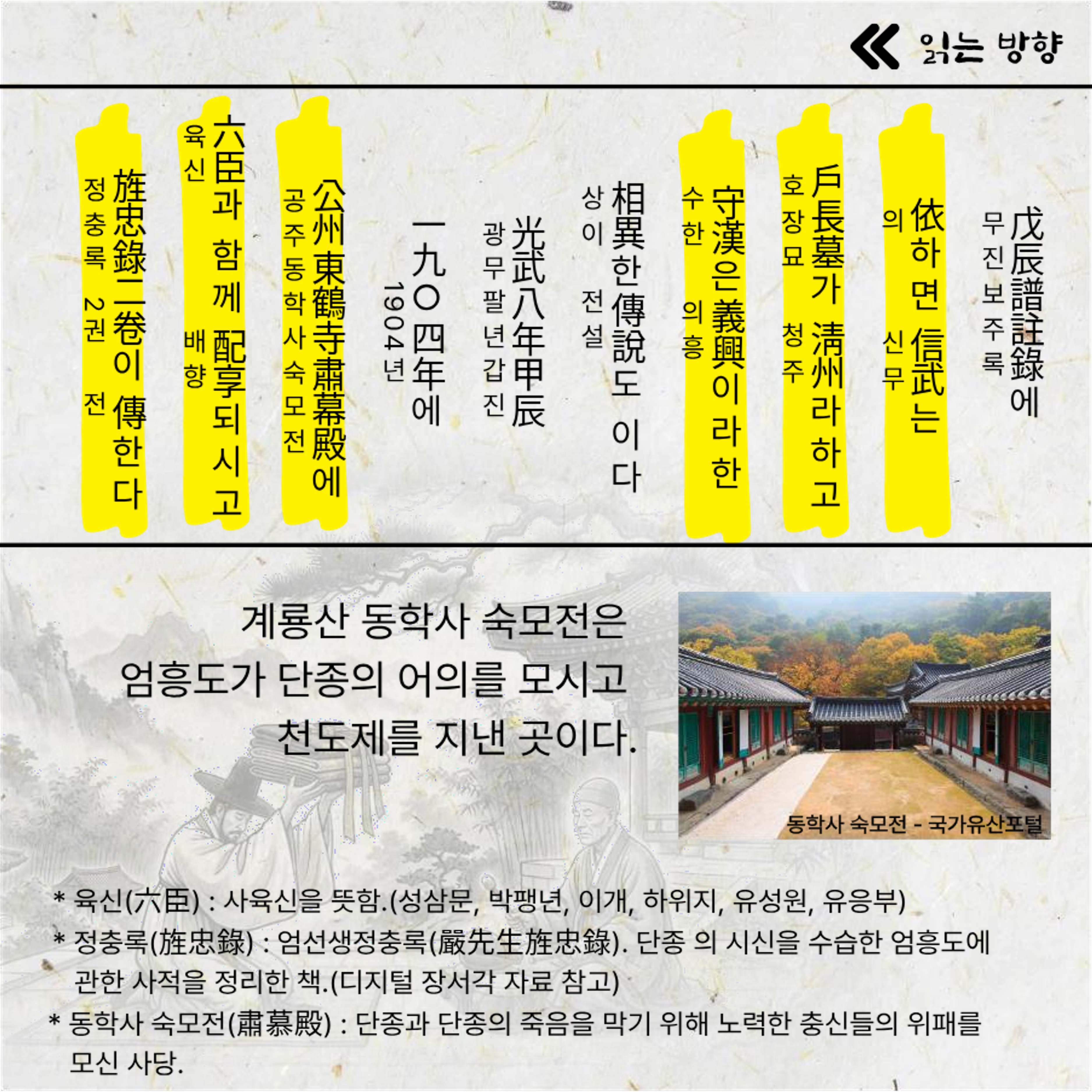 다양한 기록 방식과 용어를 소개하고, 충절의 인물 ‘엄흥도’를 중심으로 그의 삶과 신분을 살펴봅니다.